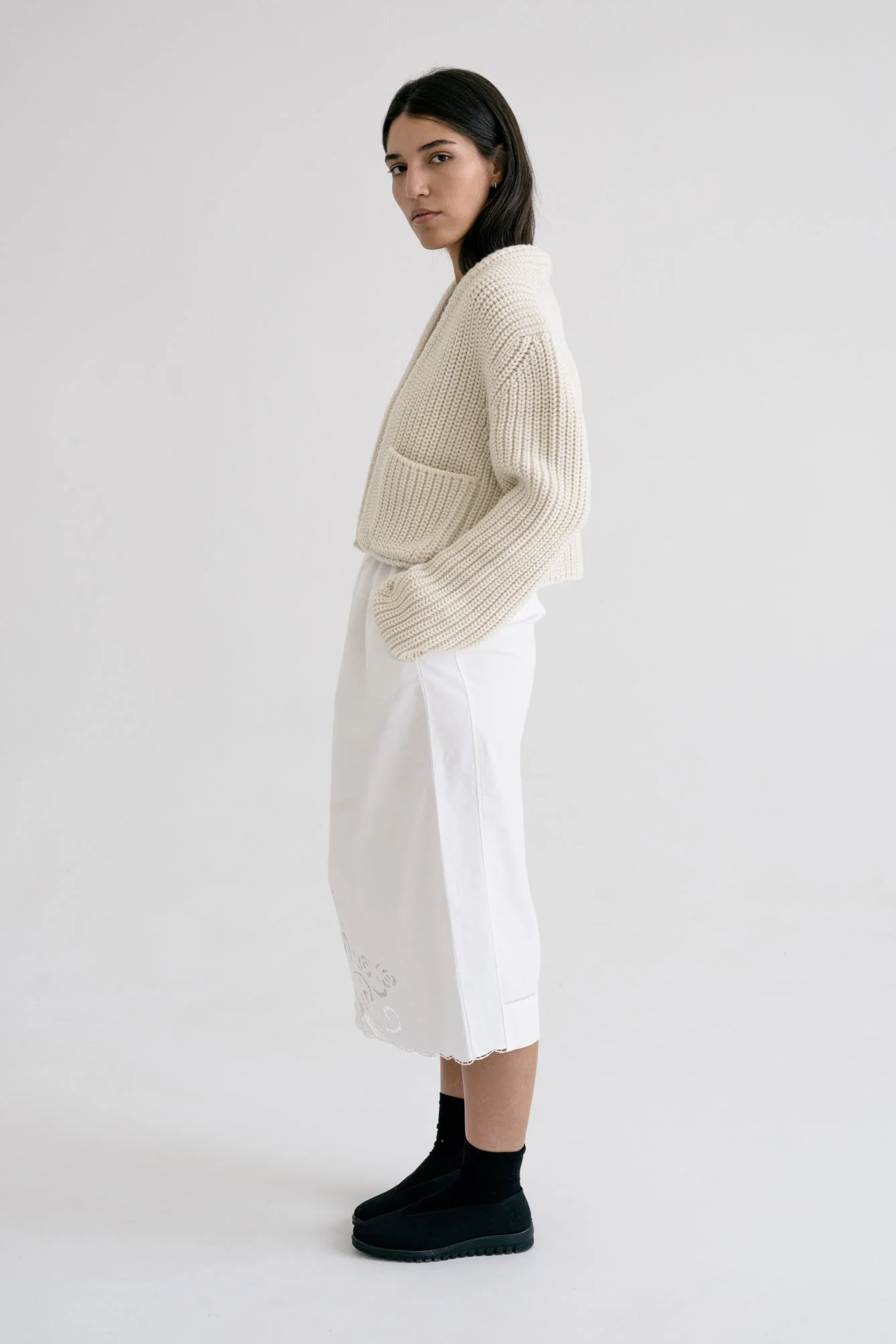 一見シンプルなニットもサイジングやフィッティングを綿密に研究し、時間をかけてデザインされており、一枚のニットを編むのにも時間を要します。
