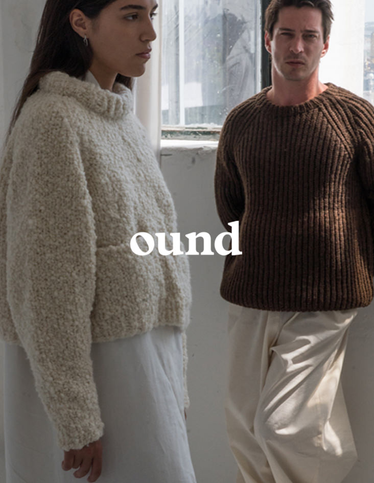 着る人の素肌を通して作り手の想いを伝えたいと、時間をかけて丁寧に編まれるoundのニット。